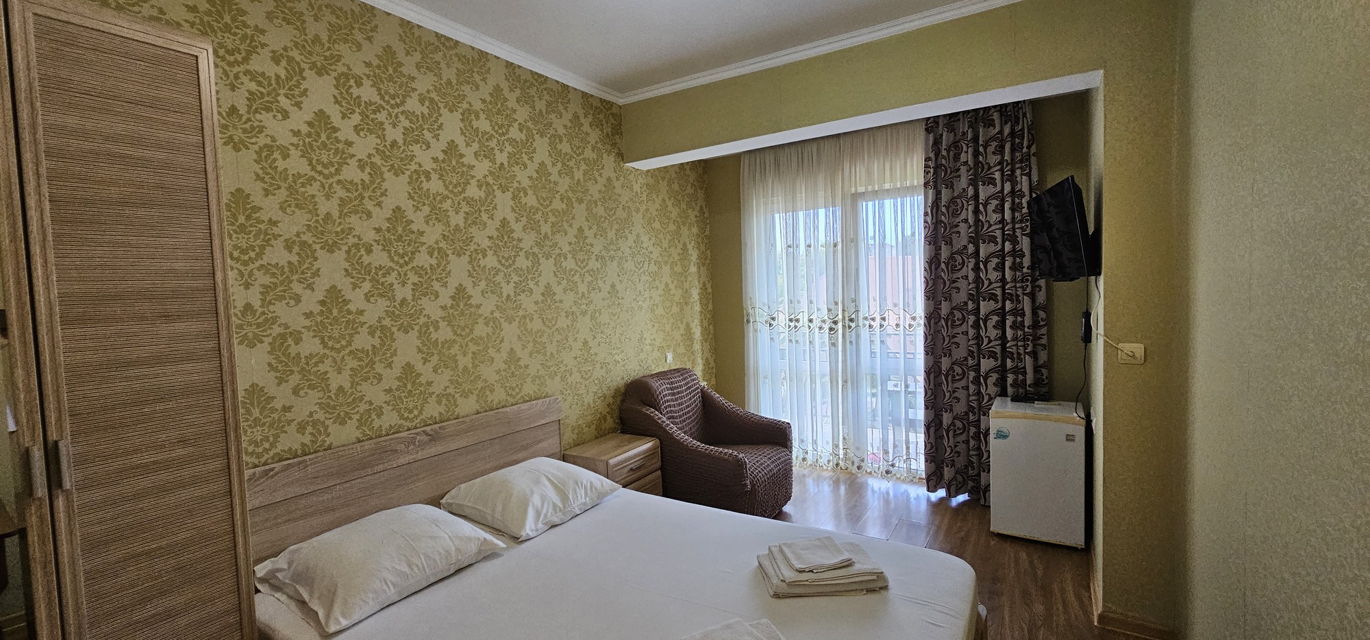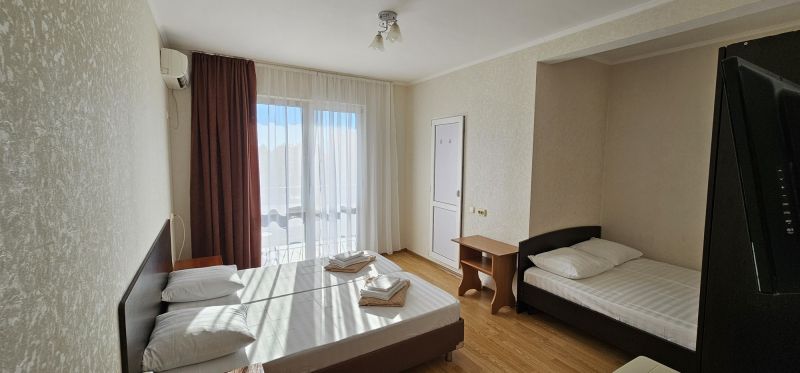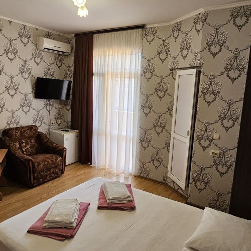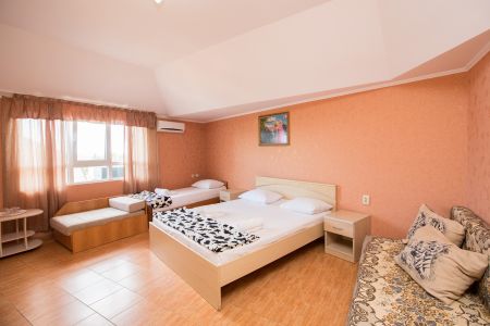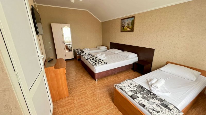 На закрытой благоустроенной территории разместились 4 четырехэтажных жилых корпуса. В распоряжении гостей – 2-х, 3-х и 4-местные номера, некоторые из которых с балконом. Во всех номерах есть кондиционер, мини-холодильник и высокоскоростной интернет, а также санузел с душевой кабиной.